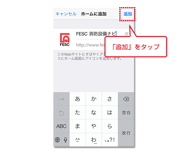 - 4. 右上の「追加」をタップするとホーム画面にアイコンが追加されます。